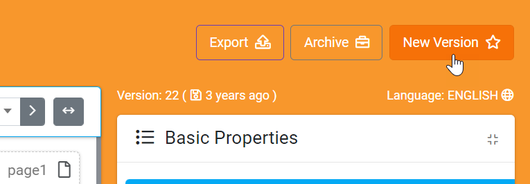 Note, the selected version will display after the form's title at the top left of the page.