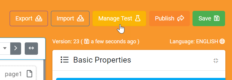 Note, that the Manage Test option is only available on Screens that are in Draft status.