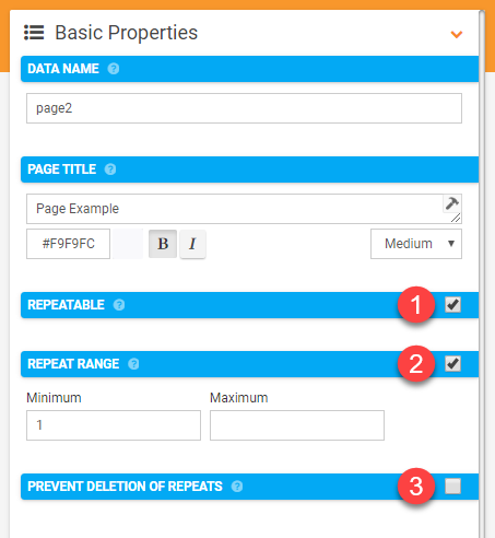 NOTE: The Page title will appear as part of the prompt when being asked to add a repeat, keep this in