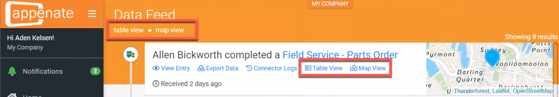 Data captured from your forms can be viewed in various ways. Feed View shows records in a timeline and includes a summary and access to various options. To see Feed View, navigate to Data EntriesFeed View.