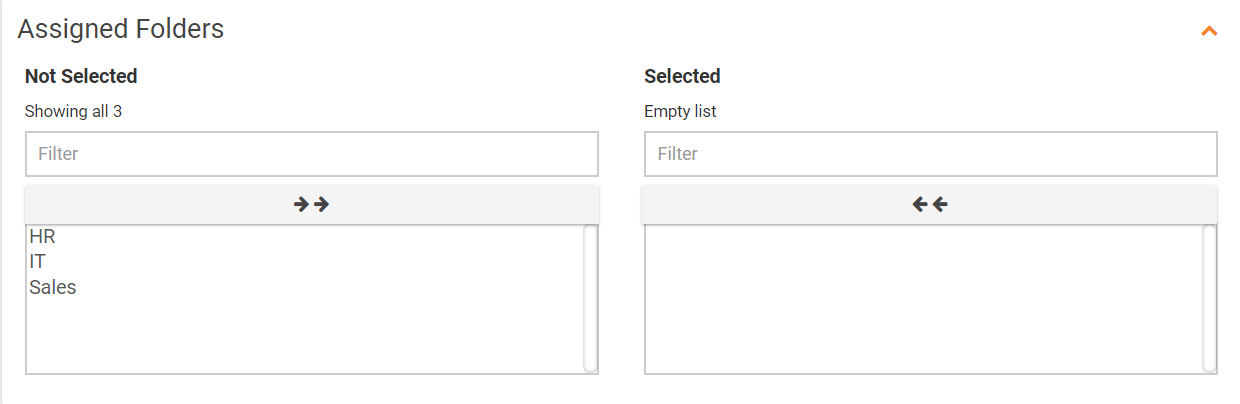 Every Folder assigned to a User allows the Screens, Docs and Data Sources inside that Folder to