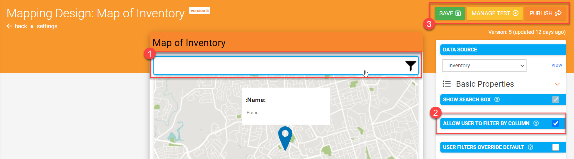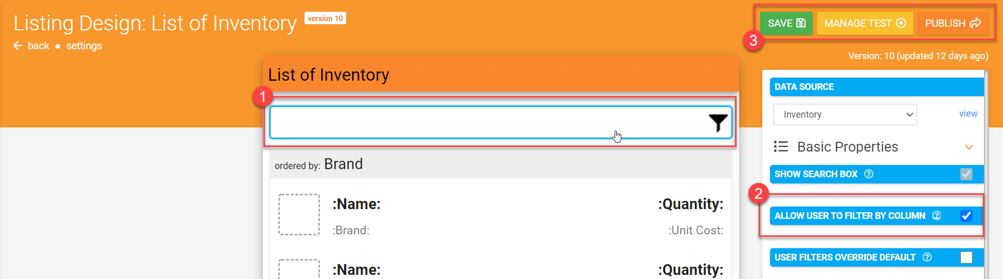 - Tick the "Allow User to Filter by Column" property